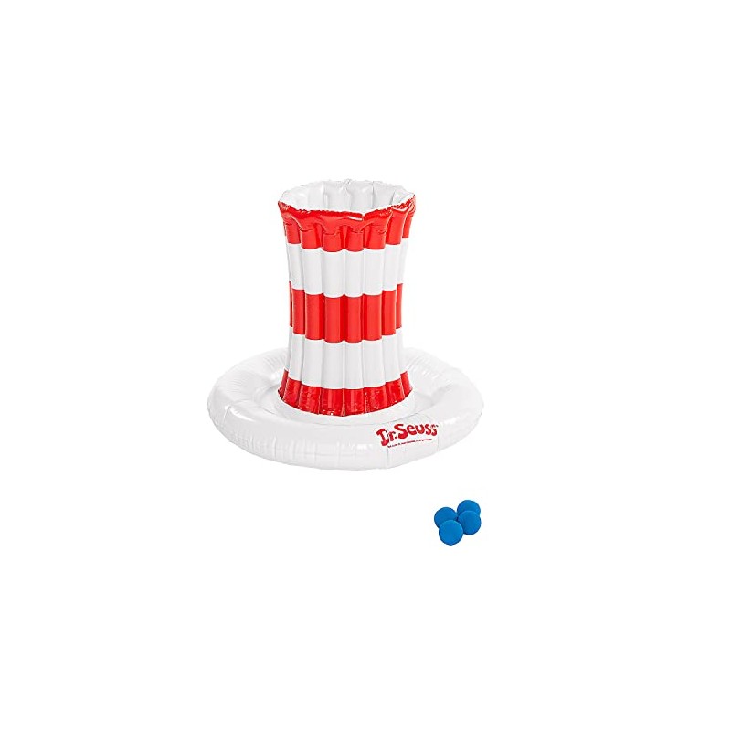 - You already know that something fun is going to go on when you see a Cat in the Hat pick at a party! This inflatable hat can be placed on the floor or worn on top of a head as players try to land the foam balls onto the top of the hat. This Dr. Seuss-themed party activity is sure to get guests moving – and laughing! Vinyl. (5 pcs. per set) Inflated, 21 1/2" x 22" diam. with four 1 1/2" foam balls.