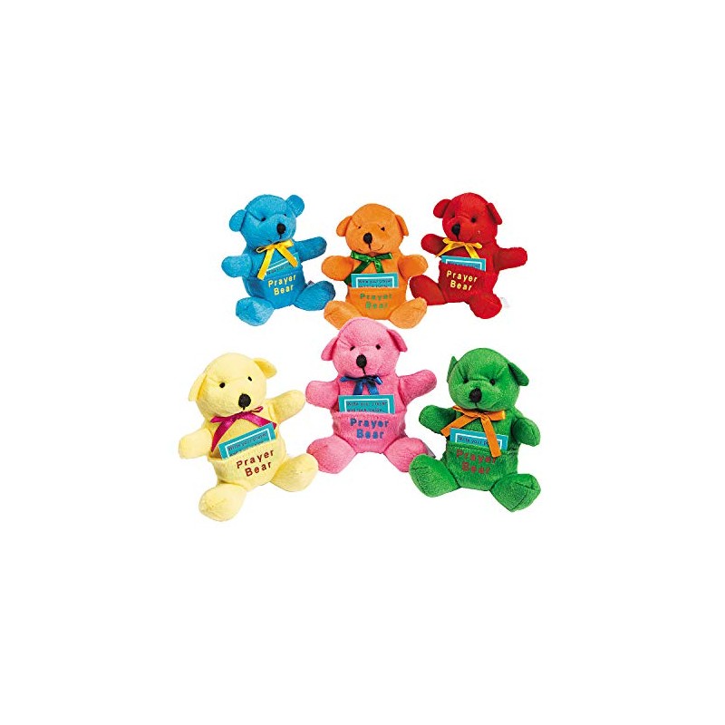 Fun Express 4 1/2" Brightly Colored Prayer Stuffed Bears with Prayer Card - 12 Bears - Great for Easter, Sunday School and VBS Bible School