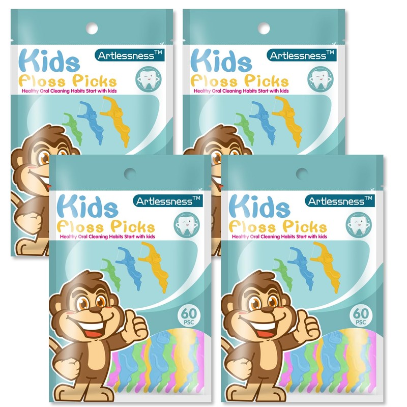 Fun Flossing Sticks for Kids,Fluoride Free, BPA Free, Odorless, 60 Sticks per Pack, 4 Packs = 240 Sticks