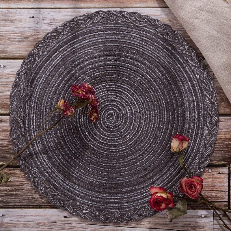 - Include 2 pieces Placemats, this braided mat is made of polyester and PP line , 15 inches in diameter.