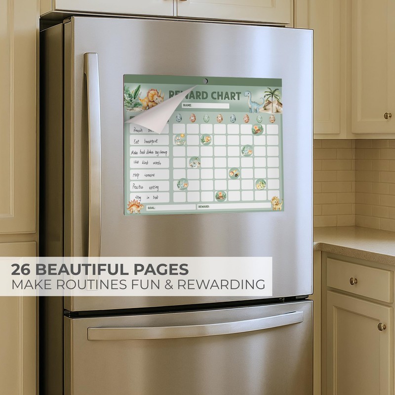- Roaring Designs Boys Will Love: Bring some dino-mite fun to chores! Featuring bold dinosaur designs and green colors, the kids chore chart transforms everyday tasks into exciting adventures to look forward to!
