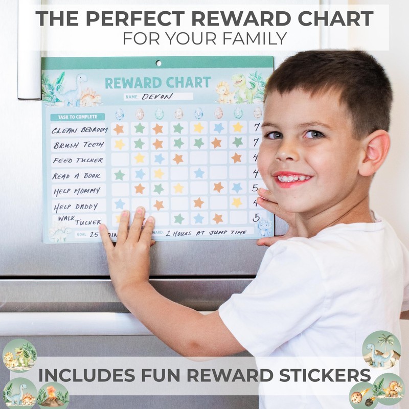 - Colorful Stickers That Keep Kids Going: Who knew chores could be this awesome? The chores chart for kids includes 6 colorful star sticker sheets plus 1 dinosaur-themed sticker chart sheet - making it super fun for kids to track progress and stay motivated every day