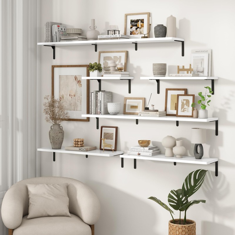- 【Hassle-Free Installation – All Hardware Included】Installation is simple and stress-free with all necessary hardware included—high-quality screws, wall anchors, and clear illustrated instructions. Suitable for drywall, concrete, or brick walls, the versatile hardware ensures a secure fit. Pre-drilled holes in the shelves and brackets allow easy, accurate assembly without special tools or professional help. Mount your shelves in 5 minutes and enjoy stylish, functional storage.