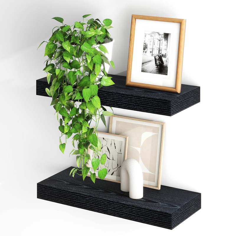 - Maximize Your Space: Make the most of your living area by decluttering surfaces with these floating shelves. They provide additional storage or a stylish way to showcase your favorite items, all without taking up valuable floor space