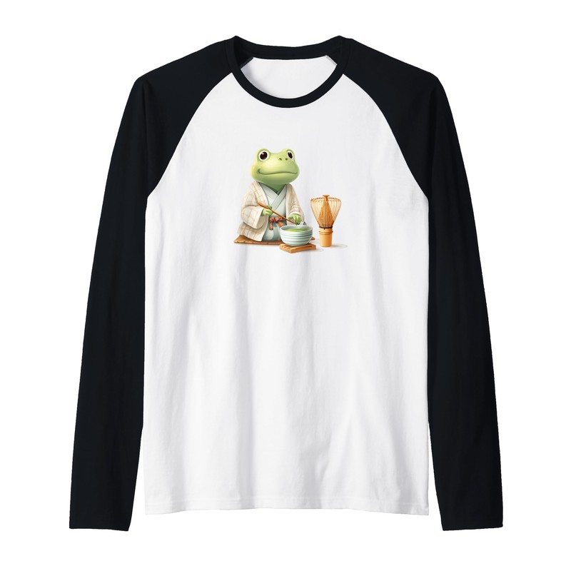 Fun Tea Ceremony Costume for Japan and Frogs Lovers Raglan Baseball Tee