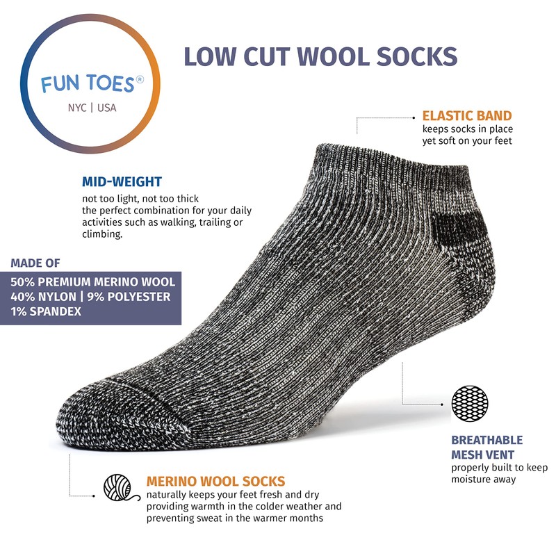 - Calcetines de lana duradera de corte bajo a los hombres les encantará la fuerza de los calcetines de lana merino para hombre que se han reforzado a lo largo de los talones y dedos de los pies para garantizar que duren el mayor tiempo posible.