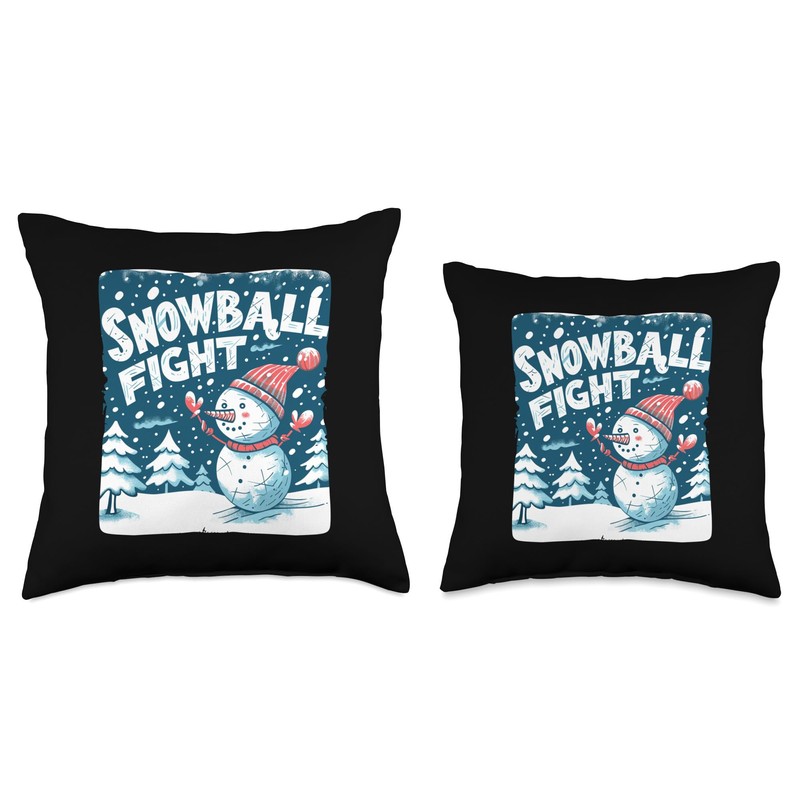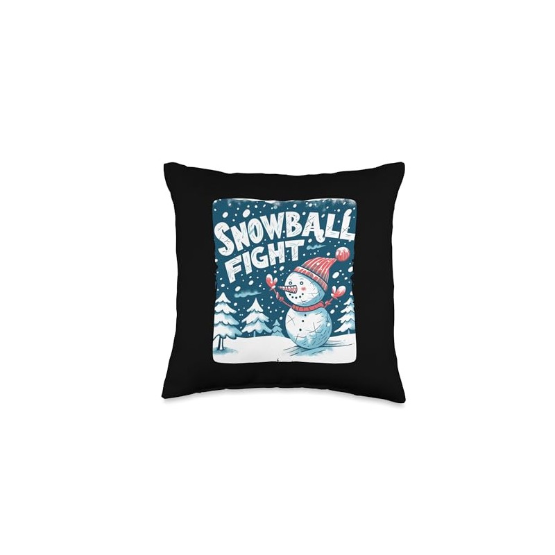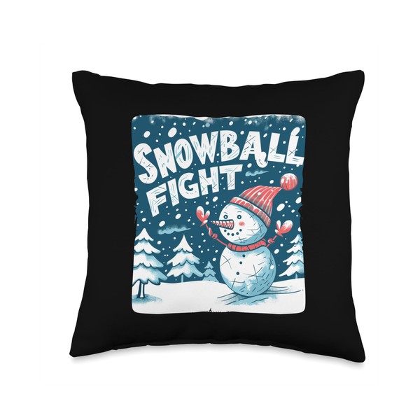 Fun Winter with Snowball Fights and Snowmen Throw Pillow