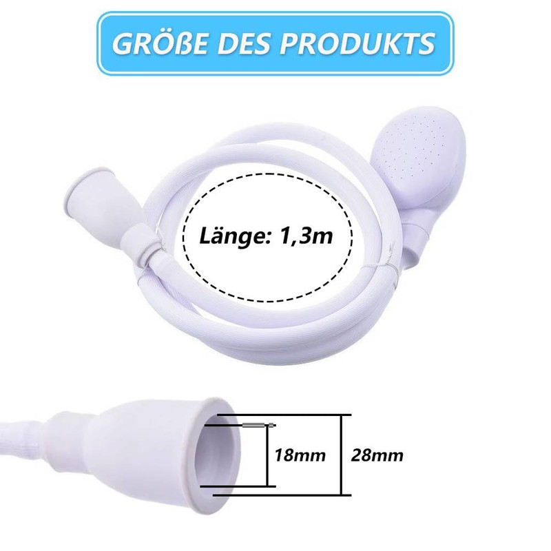 - [Passende Größe] – Passend für runde Wasserhähne (Durchmesser 1,8–2,6 cm), 1,3 m langer flexibler Schlauch, der sich frei ausdehnen lässt, um unterschiedlichen Anforderungen gerecht zu werden. Für eine optimale Installation empfehlen wir, den Wasserauslassadapter 5 Minuten lang in heißes Wasser zu legen, um das Gummi weich zu machen und einen festen Sitz zu gewährleisten.