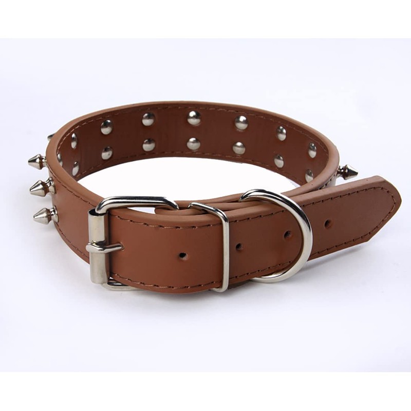 FUNAT Double Row Pet Collar with Studs, Rivet Collar for Medium and Large Dogs, PU Dog Collar Dog Chain