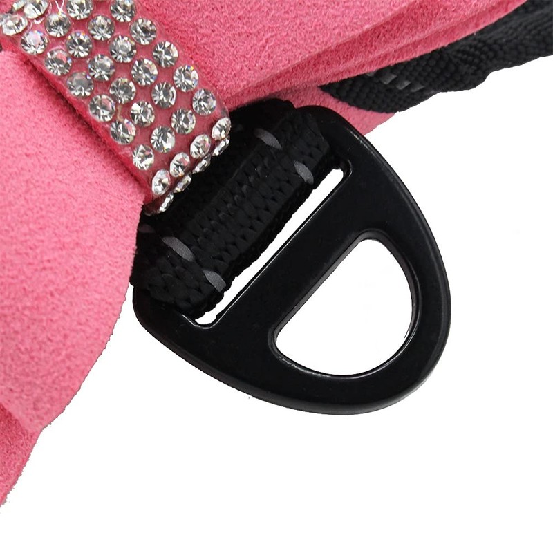 - The pet harness is made of soft PU leather with bling crystal rhinestones studded.
