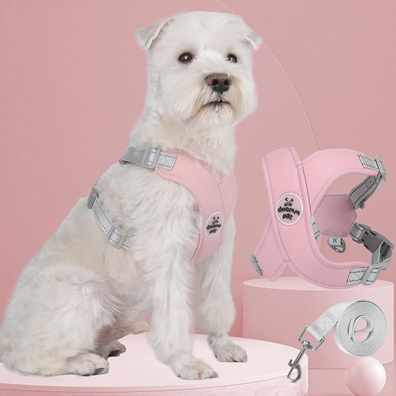 FUNAT Weiches Hundegeschirr und Leinensatz, Fluchtsichere justierbare Weste für kleine Rassen, Haustier-Brustgeschirr Anti Rutsch Weste Reflektierend Outdoor Hundespazierseil