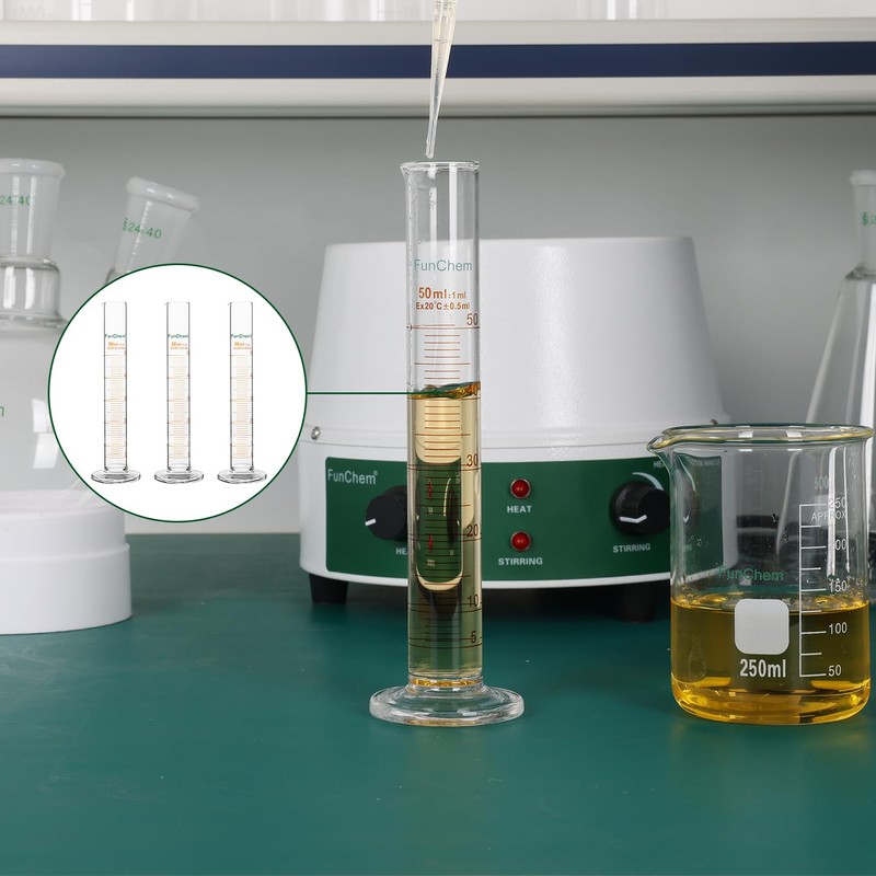 FunChem 3-Pack Borosilicate Glass Graduated Cylinder Measuring Cylinder, 50 ml
