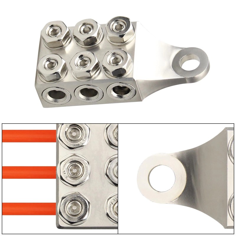 Battery Terminal Connectors: 6 x hole-holders and 6 x threaded studs. Our 12-Way battery terminals distribution block can clamp up to 12 bettery cables, which is perfect for car audio battery, camera and other equipment