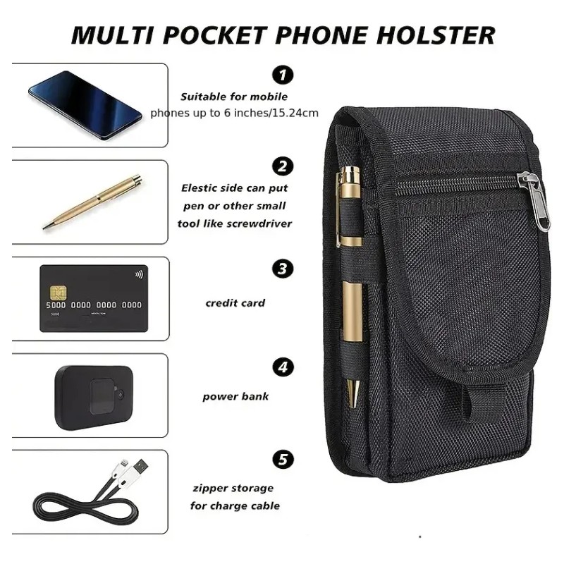 Funda para teléfono con cinturón, soporte grande para smartphone, funda táctica multiusos para teléfono móvil, soporte para teléfono móvil para trabajo, senderismo, camping, barbacoa, rescate!!