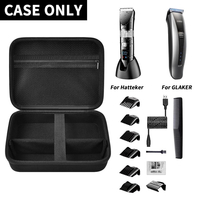 - Caja de mecanismos de afeitado para hombre: especialmente diseñada para el kit de corte de pelo Hatteker / para GLAKER/ para BaBylissPRO / para andis master y kit de corte de pelo accesorios como: cabeza recortadora de pelo, cabeza recortadora de precesión, cabeza recortadora de nariz, cargador, base cargador, 6 peines guía, peine de peluquero, cepillo para polvo de limpieza. manual de instrucciones instrucciones Tamaño interior: 21 x 15,5 x 7 cm, tamaño externo: 9 x 16,8 x 7,5 cm.