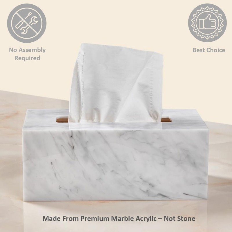 Funda rectangular para caja de pañuelos – Soporte rectangular para caja de pañuelos – Compatible con Kleenex – Accesorios de baño de mármol acrílico