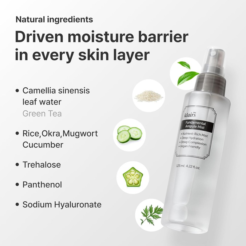 Fundamental Ampule Mist, 75% Green Tea Korean Face Toner Spray, Finishing Spray, Dewy Healthy Glow look, Set Makeup, Hydrating, Lightweight Facial Mist | Alcohol, Fragrance-Free