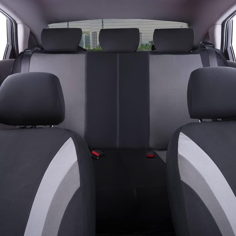 - 【El PAQUETE INCLUYE】5 fundas para la cabeza de los asientos (30*27 cm) + 2 asientos delanteros (118*56 cm) + 1 respaldo trasero (135*76 cm) + 1 cojín del asiento trasero (135*56 cm) + 25 pcs Ganchos + Instrucciones. Nuestra funda para asiento puede proteger el respaldo de su asiento. El diseño antipatadas evita la entrada de polvo.