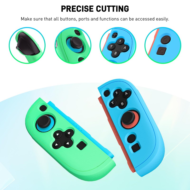 - 【 Anti-slip Texture 】 The blue+green Switch 2 silicone joycon cover is covered with a fine matte frosted texture, which reduces the friction when in contact with the palm. The frosted texture feels smooth, making it comfortable to hold and anti-slip and sweat-proof, preventing the embarrassment of losing the hand during intense gaming and ensuring a seamless gaming experience.