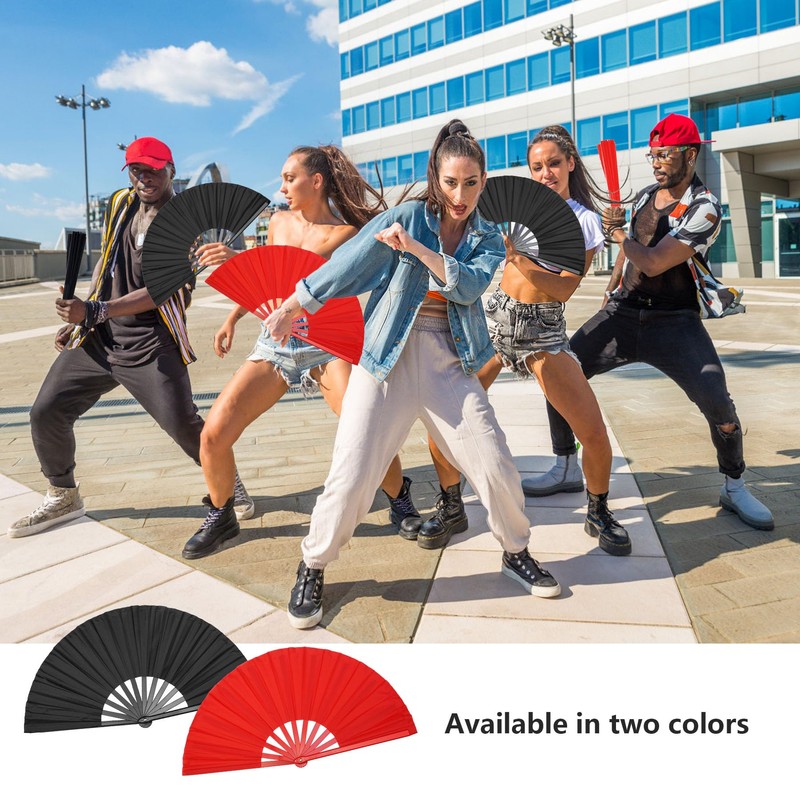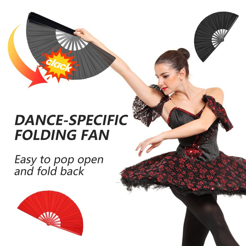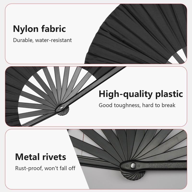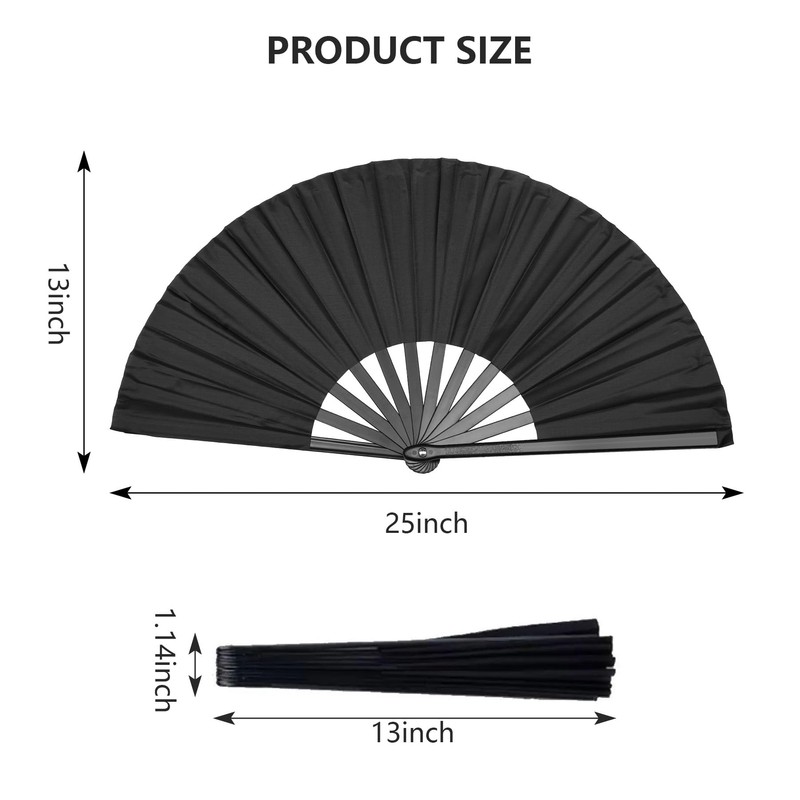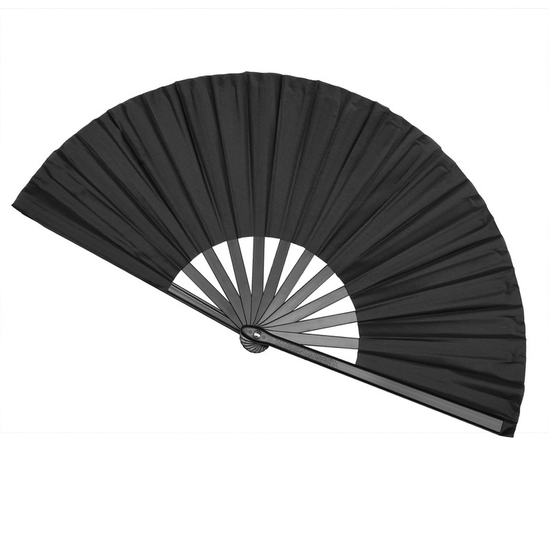 Fundodo Large Folding Hand Fan: 13" Nylon Fabric with Clack Sound - Rave Dance Fan for Women & Men (Black 1 pack)