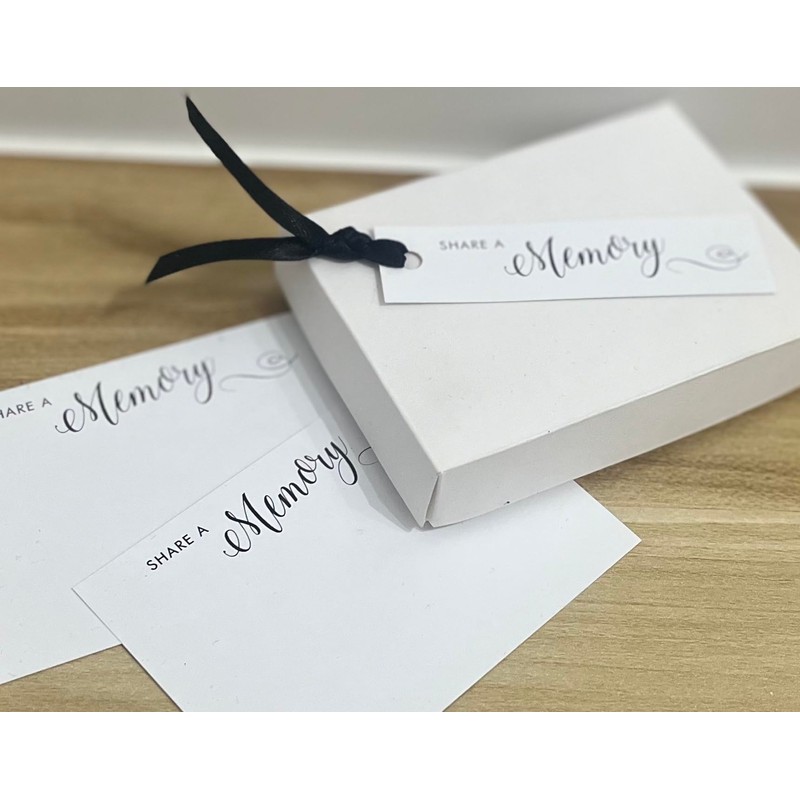 - 50 x 'Share a Memory' Cards - Professionally printed onto White 250gsm card. Size: A7, 105mm x 74mm