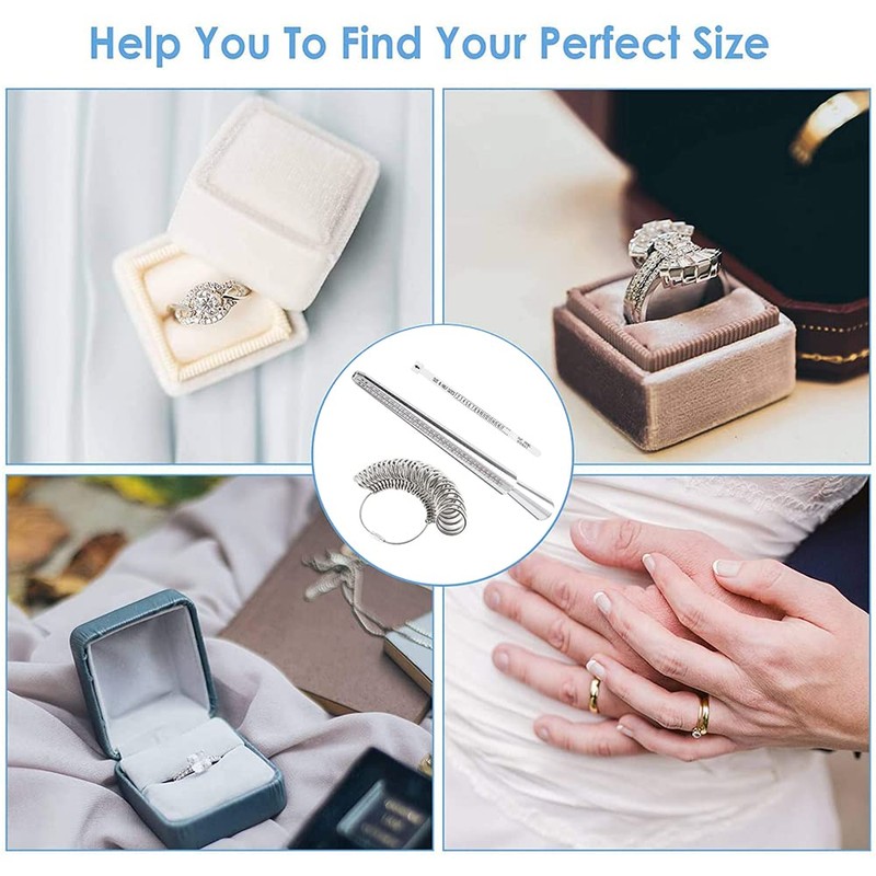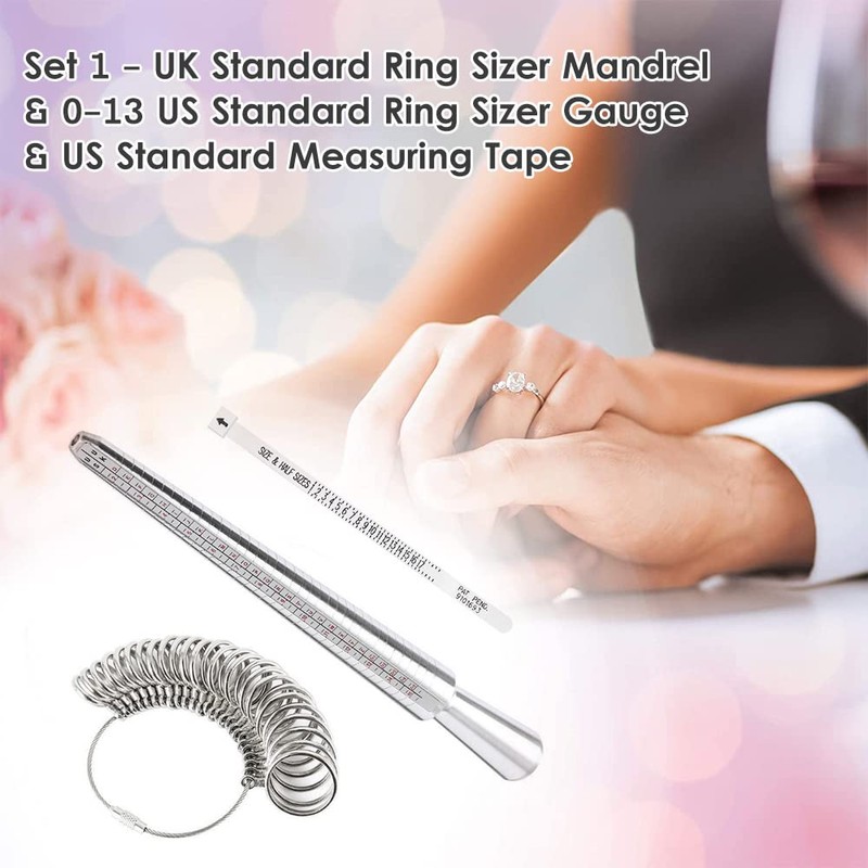 - 📍3pcs set includes 1 Ring Sizer Mandrel, 1 Ring Sizer Gauge and 1 Measuring Tape, useful tools for quickly figure out the sizes of rings and fingers.