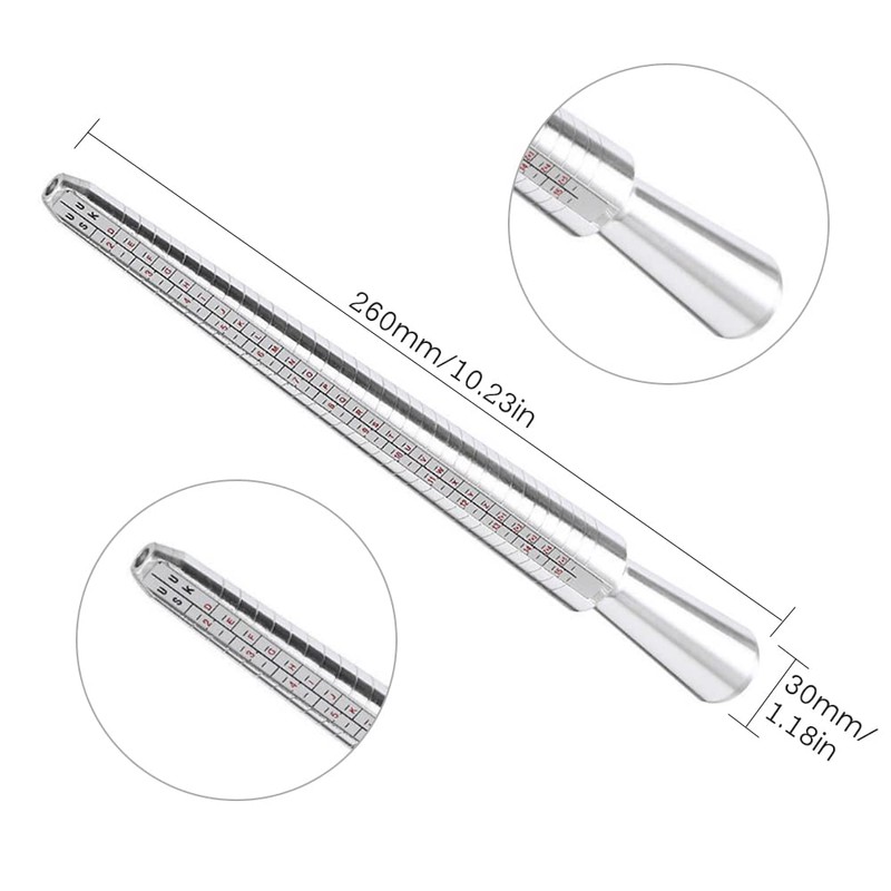 FUNFANG Aluminium Ring Sizer Mandrel Metal Ring Sizer Finger Sizing Stick Mandrel Tool with Ring Sizer Gauge Set Measuring Tape for Ring Size Measurement Set 1