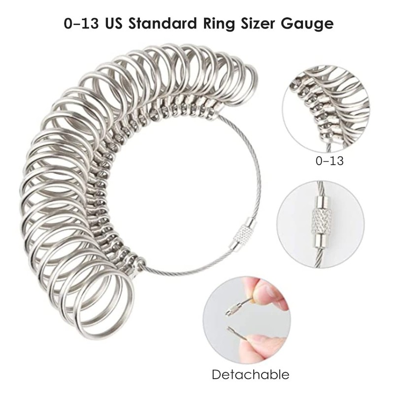 - 📍Ring Sizer Gauge comprises of 26pcs, available in UK standard and US standard, A-Z in UK Standard and 0-13 in US Standard.