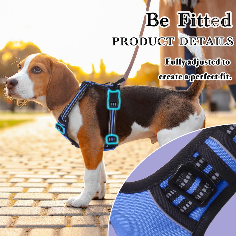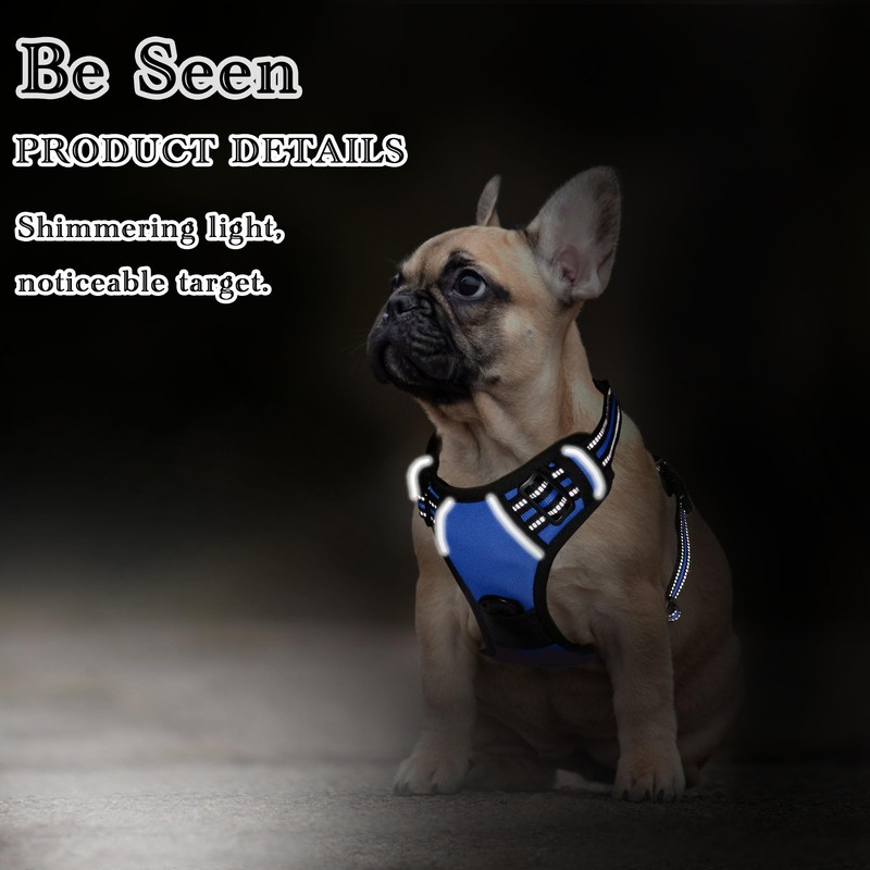 - NIGHT PROTECTION: Our dog harness has a reflective strip design. You can see your dog is pretty clear with faint light at night. Don't worry about it getting lost or any accidents happening. And have a nice night walking with dogs.