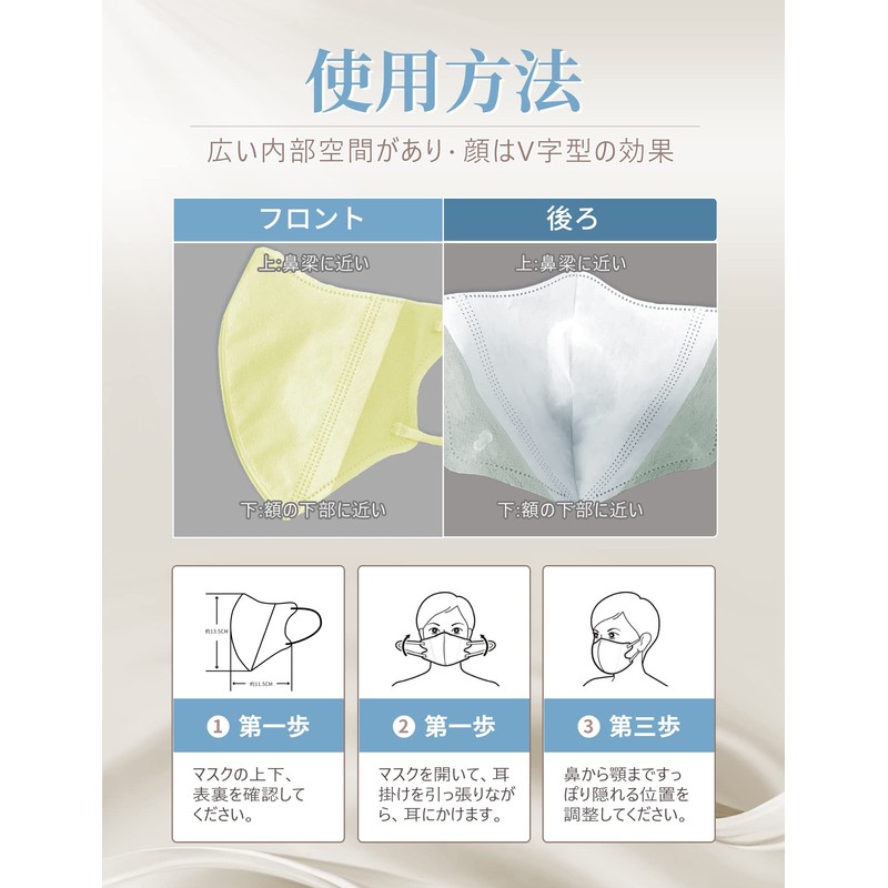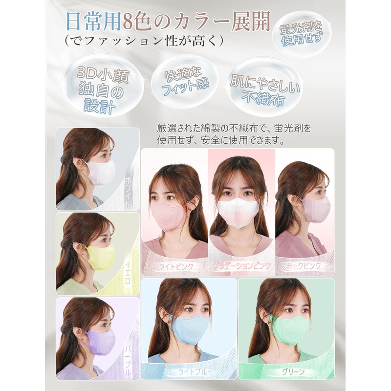 • (Color Small Face Mask) A natural color that brightens the face color and makes your bloody like a blush. Recommended for those who want to enjoy stylish with disposable masks. The switching line is excellent for making your face look smaller, and makes your face lines look neat and sharp