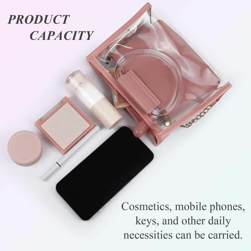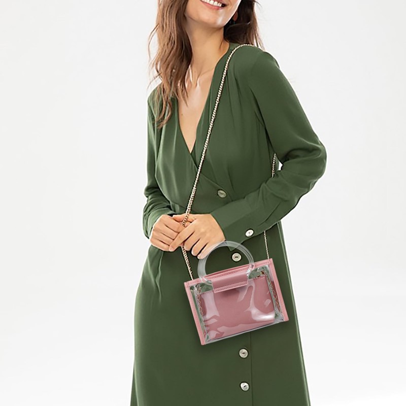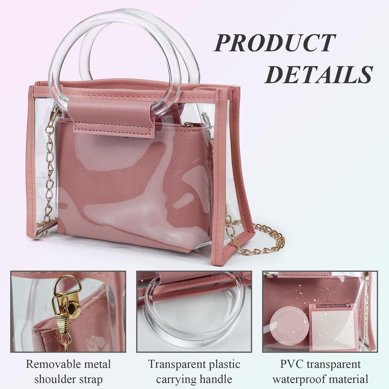 FuninCrea 5x7 Inch Small Crossbody Bag for Women with Removable Clutch Bag and Chain Shoulder Strap, Small Handbag Transparent Shoulder Bag Handbags for Women with Semicircular Clear Handle (Pink)