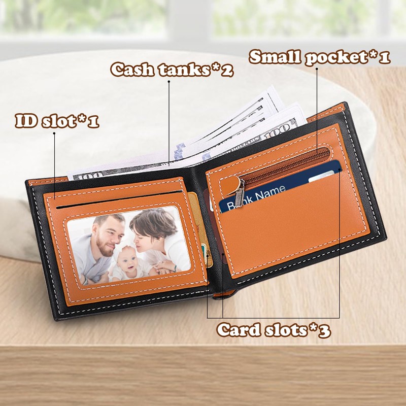 - 2 long slots + 1 ID window + 3 card slots + 1 zipper pocket:This card wallet men has long slots for cash and checks, the card slots for bank cards and business cards. ID card slot can hold an ID or photo of your darling, the coin compartment can store coins and protect them from loss. It is perfect for your daily trip.
