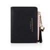 FuninCrea Wallets for Women, Faux Leather Womens Wallet with Zipper Coin Pocket, Compact Tassels Pendant Credit Card Holder with 5 Credit Card Slots and ID Window (Black)