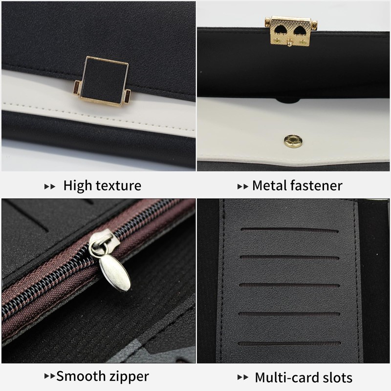 - Waterproof PU leather: the women's wallet is made of soft PU leather, which is comfortable to the touch and is waterproof. If the wallet accidentally gets wet, it can be quickly wiped clean with cloths. The closure method with metal press studs is easy to open and does not tend to rust and fade