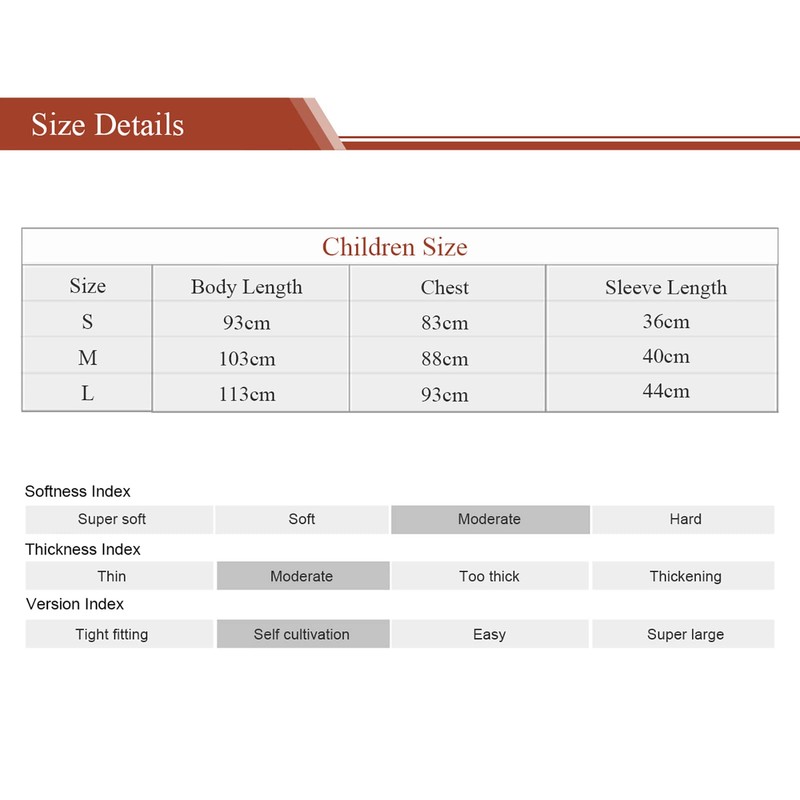 - S: 3-4 years old M:5-6 years old L: 7-8 years old