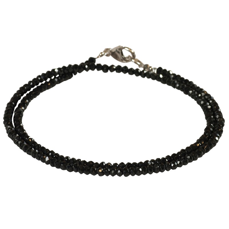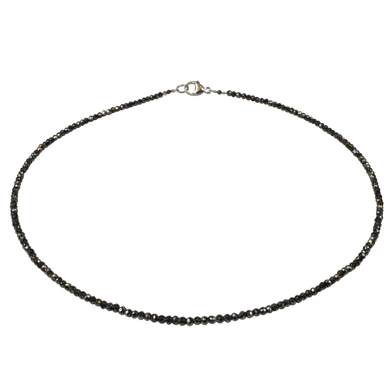Funk-Collier Black and Brown Spinel Faceted 925 Si. Carabiner, Approx. 45 cm, Diameter Approx. 3 mm, Light Cut, Gemstone, Spinel