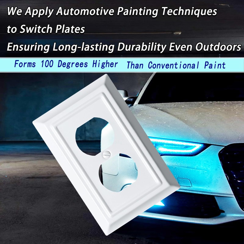 - DESIGNED FOR INDOOR USE BUT SUPERIOR EVEN WHEN INSTALLED OUTDOORS COMPARED TO REGULAR WALL PLATES:These wall plates are made using durable automotive painting technology. the wall plate covers can withstand wind, rain, and sun exposure without fading over time. They are odorless and suitable for any space