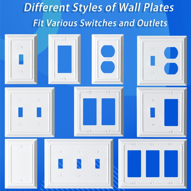 - TEN STYLES AVAILABLE FOR VARIOUS WALL PLATES : Suitable for outlet receptacles,light switch,dimmer switch,rocker switch,toggle switch,GFCI outlets,and more.To facilitate your one-stop shopping experience