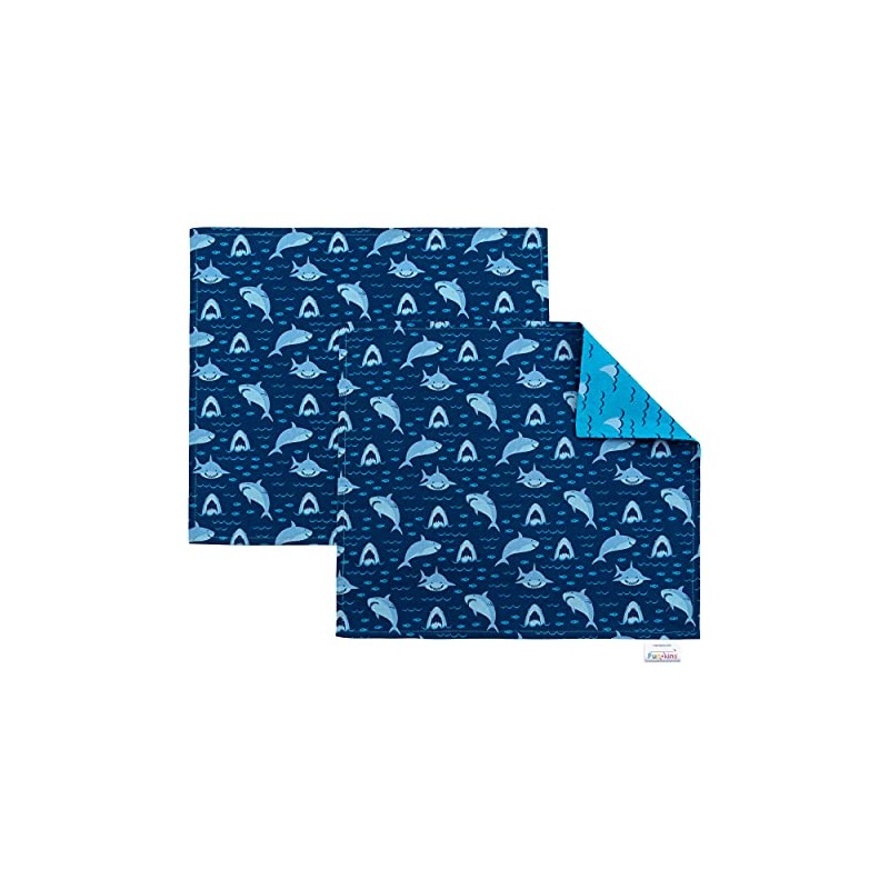 Funkins Reusable Cloth Placemats for Kids & Lunch Boxes | Reusable, Machine Washable, Eco-Friendly | 15"x13", 2-ply, Thick, Absorbent, Durable | Set of 2 Placemats (Sharks)
