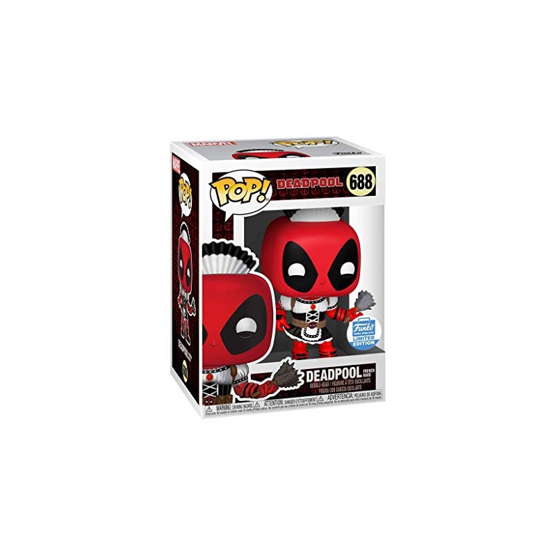 From Marvel, Deadpool as a French maid, as a stylized pop! Vinyl from Funko Figure stands 9.5 cm tall and comes in a display case with viewing window. Check out the other Deadpool figures from Funko! Collect them all!