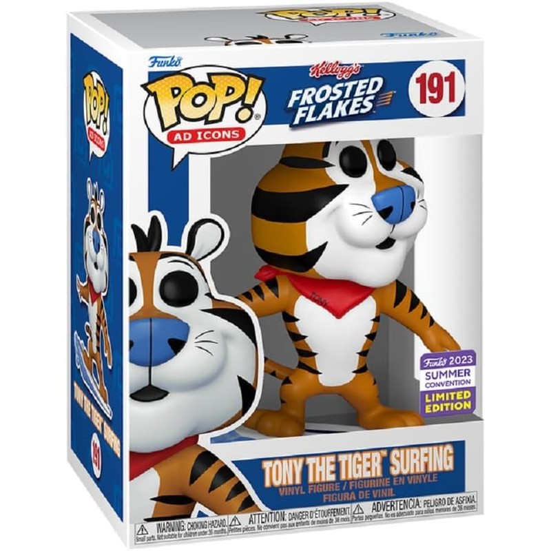 Start your day off great with Funko Pop! Tony the Tiger Surfing! Hit the waves and add some flavor to your Ad Icons collection with this exclusive Kellogg鈥檚 Frosted Flakes mascot! Vinyl figure is approximately 4.8-inches tall. Product will have the 2023 Summer Convention sticker on the box. Item Number: 71770 Category: Ad Icons License: Kellogg's Product Type: Pop! Exclusives sold within the U.S. maybe available in other territories with select partners.