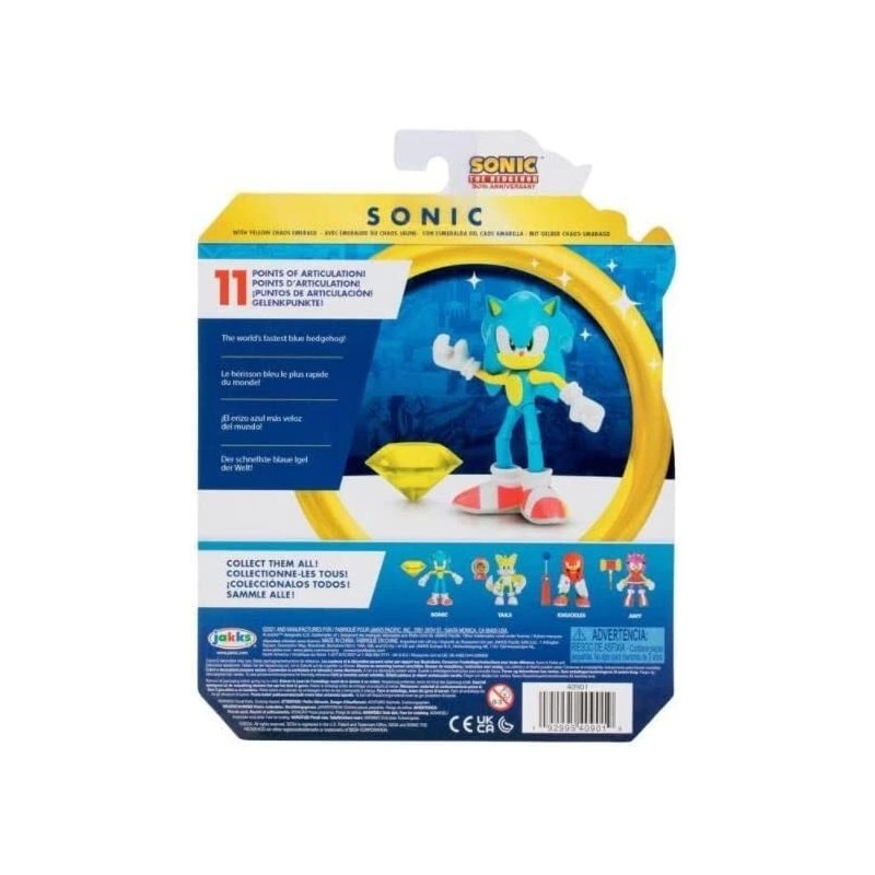 - The Sonic four inch articulated figure is sure to be a hit with kids and Sonic fans! This authentic figure has articulated limbs and comes with a Yellow Chaos Emerald accessory