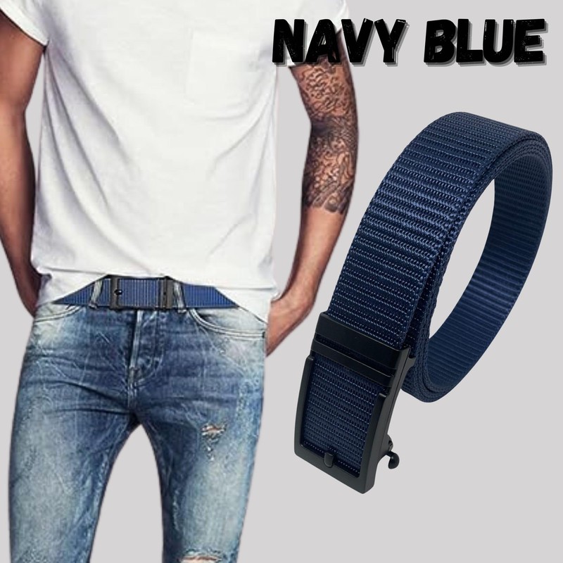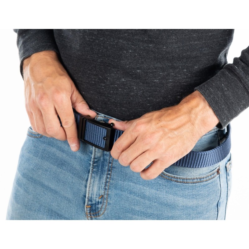 Funky Junque - Cinturón de carraca para hombre, nailon táctico, militar, para senderismo, hebilla de liberación automática, marino, Large (Pant Size 38"-41")