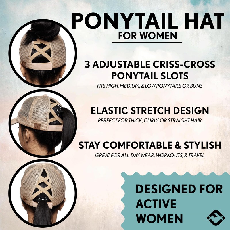 - WHY YOU WILL LOVE IT: Women’s baseball cap prime benefits include: criss cross elastic bands that allow you to wear your hear at multiple levels – sport this cap with hair down, up in a messy bun, or in a ponytail, great for running and working out – keeps hair off your neck to prevent sweating, comes in many colors to match your cute outfit, wear any day at any time and instantly look fun, flirty, and stylish!