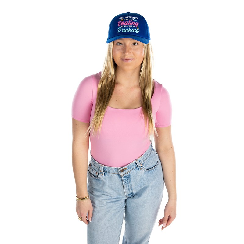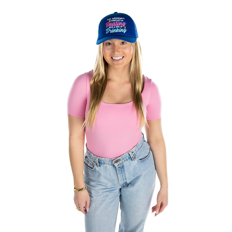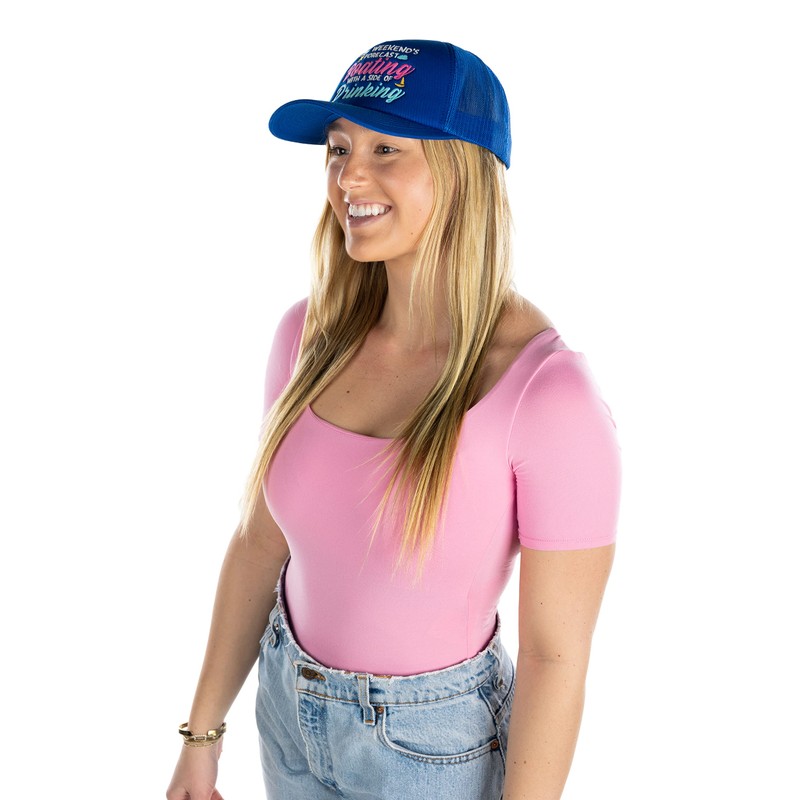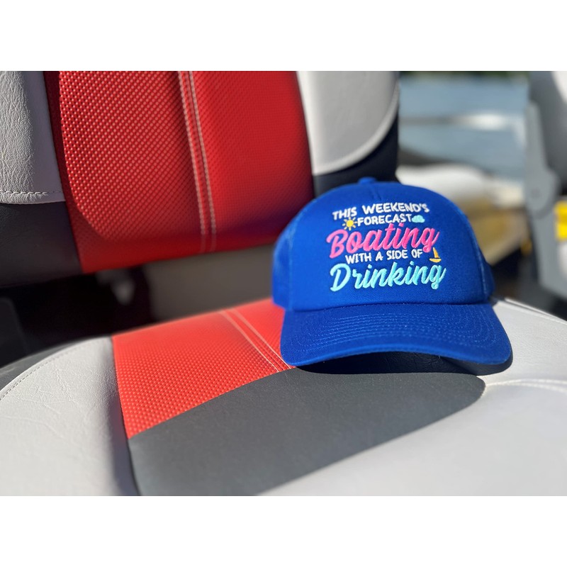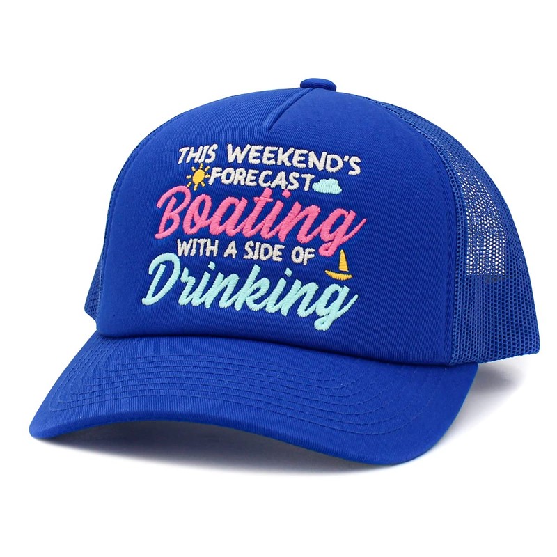 Funky Junque Embroidered 5-Panel Trucker Hat - Boating and Drinking (Royal Blue)