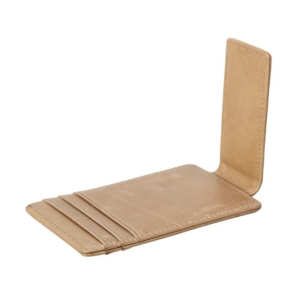 Funky Junque Men's Genuine Leather Slim Minimalist Front Pocket Magnetic Money Clip Wallet and Card Holder with RFID Blocking, Beige