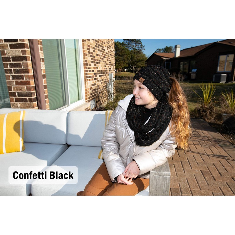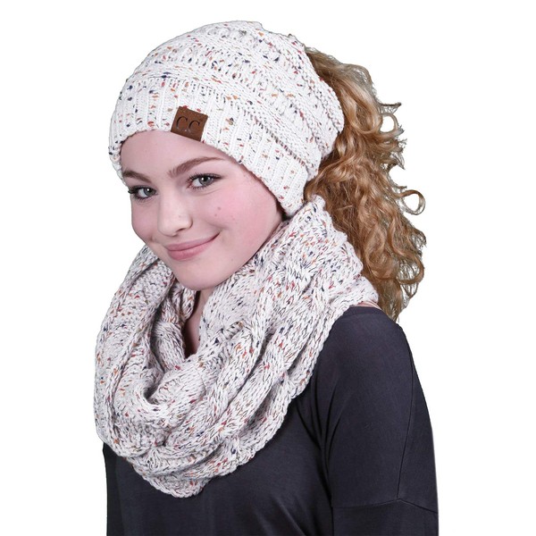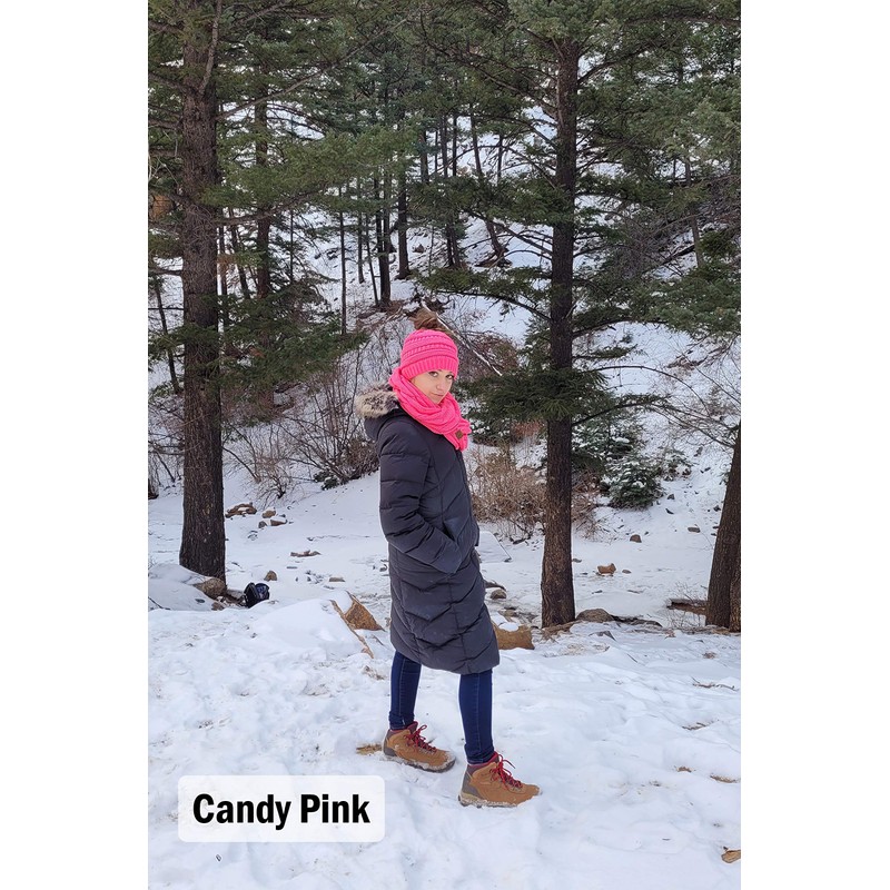 • WHY YOU WILL LOVE IT: Matching beanie and scarf prime features allow you to look fun and fashionable, while staying warm. This knit winter infinity scarf paired with a matching high ponytail/messy bun beanie tail is an adorable updated look of the classic matching hat and scarf combo.