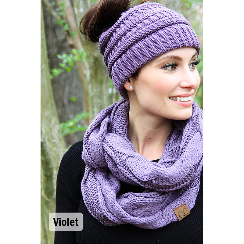 Get ready to stay warm, cozy and fashionable all winter long with these adorable CC matching messy bun beanie tails and infinity scarf sets! Perfect for a Christmas gift or birthday present.