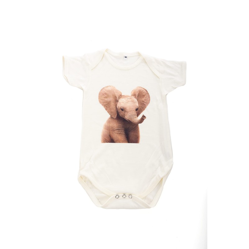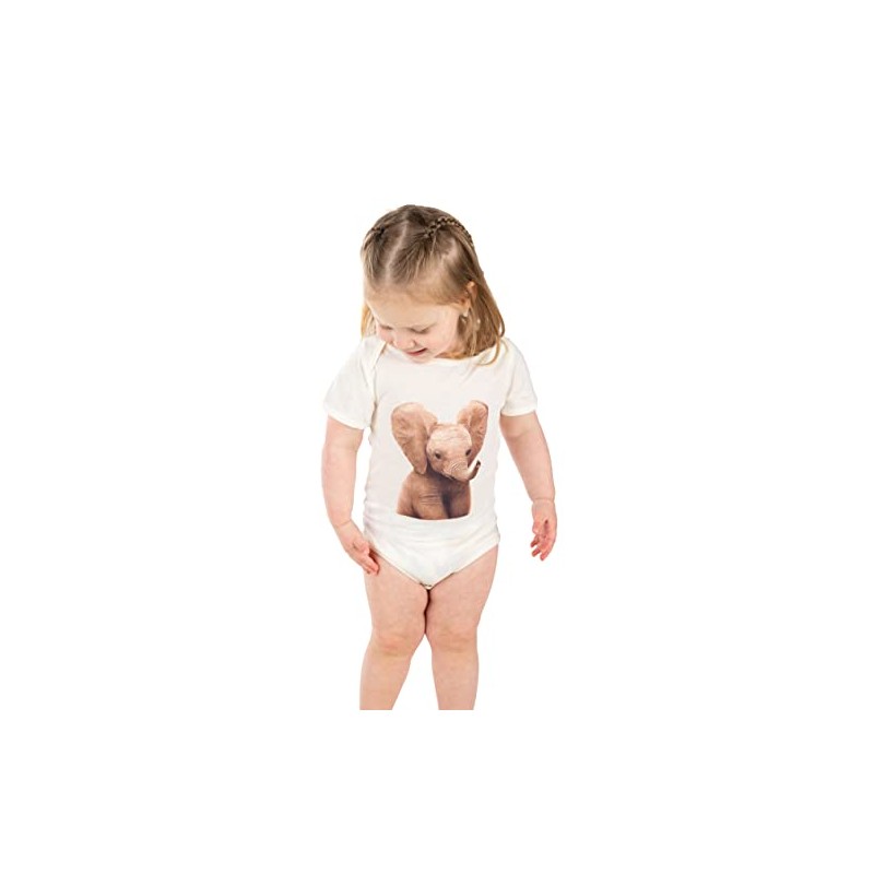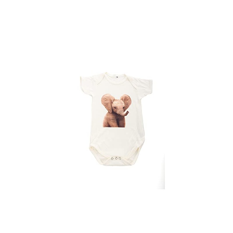 Funky Junque Unisex Baby Short Sleeve Onesies Bodysuits Cute Graphic Design Baby Essentials, Baby Elephant, M - 6-12 Months