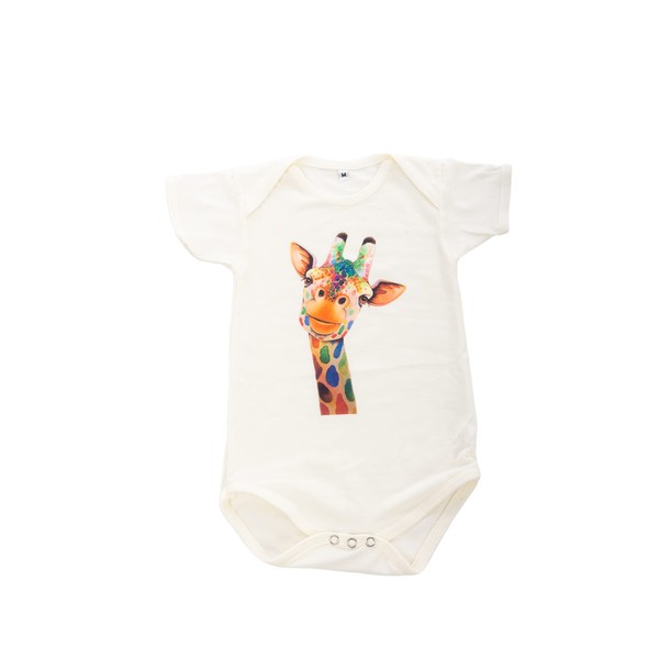 Funky Junque Unisex Baby Short Sleeve Onesies Bodysuits Cute Graphic Design Baby Essentials, Colorful Giraffe, XL - 18-24 Months